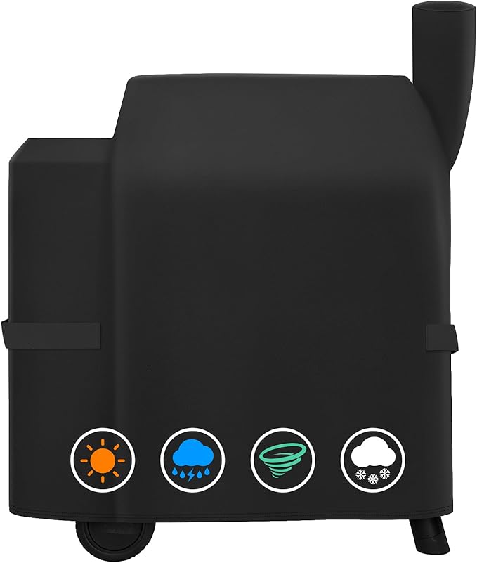 Heavy Duty Waterproof Wood Pellet Grill Smoker Cover, UV Resistant Full Length BBQ Grill Cover Compatible with BAC503 Traeger Pro 22 / Pro 575 Series, Lil' Tex Grill and More, All Weather Protection