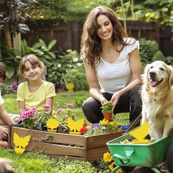 - [4 Shapes + Extra Little Shovel and Strips] Comes with 36 traps of 4 natural designs that are in the shapes of: birds x9 pcs, butterflies x9 pcs, sunflowers x9 pcs and roses x9 pcs. Also comes with an extra little shovel for digging inside pots to put the trap in. The strips can be used to go through the hole on the trap and tied to hang it on a branch or leaf. 24/7 US Customer Service, free return or refund.