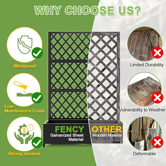 - 【Space-Saving Design】The combination of the planter box and trellis saves space while offering an attractive garden bed. This space-efficient solution is ideal for gardening enthusiasts facing space constraints, allowing them to cultivate beautiful gardens even in limited areas.