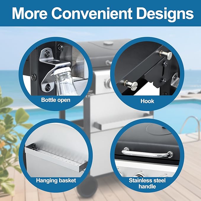 - Outdoor BBQ Essential: Whether you're hosting a backyard party or enjoying a casual BBQ with friends, this 4-Burner Gas Grill is the perfect choice for outdoor gatherings. Elevate your barbecue experience with this reliable and efficient grill, a must-have for outdoor BBQ enthusiasts.
