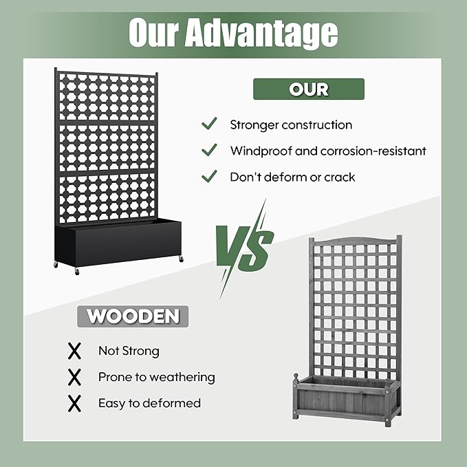 - Versatile Design--This metal planter with trellis serves triple purposes as an elevated garden bed for flowers/plants, a sturdy trellis for climbing flora, or a stylish privacy screen to enhance outdoor living spaces. Its adaptable structure makes it the ultimate gardening solution for diverse needs.